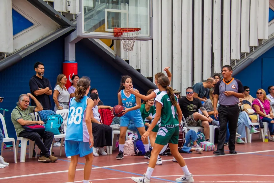 El básquet es un deporte que se juega en una cancha rectangular con dos equipos de cinco jugadores cada uno. El objetivo del juego es anotar puntos introduciendo un balón a través de un aro, llamado canasta, que está situado a 3.05 metros (10 pies) de altura en cada extremo de la cancha. Los jugadores pueden moverse driblando el balón, pasándolo a sus compañeros y tirando a canasta. El juego se divide en cuatro períodos. Los puntos se pueden obtener de diferentes maneras: 1 punto por un tiro libre, 2 puntos por una canasta hecha dentro del área y 3 puntos por una canasta hecha desde fuera de la línea de 3 puntos.