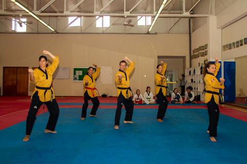 El taekwondo es un arte marcial y deporte de combate de origen coreano, conocido por su enfoque en técnicas de patadas y golpes rápidos. Se caracteriza por su énfasis en la flexibilidad, agilidad y fuerza. Los practicantes, llamados taekwondistas, realizan movimientos precisos y coreografías llamadas "poomsae", y participan en combates llamados "kyorugui". Además de ser una forma de defensa personal, el taekwondo promueve el desarrollo de la disciplina, el respeto y el autocontrol.