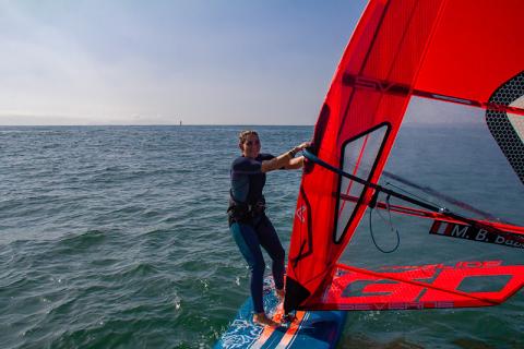 El windsurf es un deporte acuático que combina elementos de navegación y vela con el surf. Se practica sobre una tabla flotante equipada con una vela que está unida a un mástil. El windsurfista utiliza el mástil y la vela para captar el viento y propulsar la tabla a través del agua. Los movimientos del cuerpo y las técnicas de dirección permiten al deportista controlar la velocidad y la dirección.Se puede practicar en diferentes tipos de cuerpos de agua, como mares, lagos o embalses.