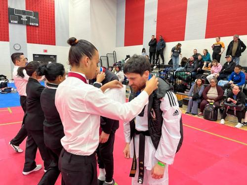 Luego de compartir con deportistas de alto nivel, Alejandro participó en el torneo en la modalidad de Kyorugi, en la categoría -63 kg, y subió al podio al obtener la medalla de bronce.