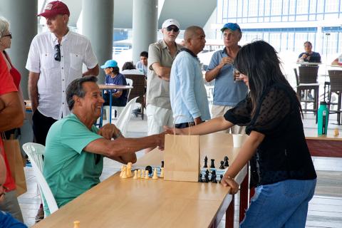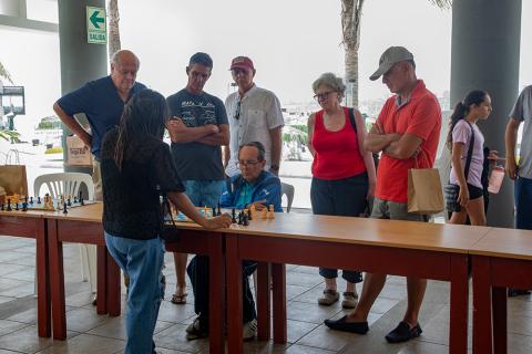 Por tercer año consecutivo, la Gran Maestra del Ajedrez, Deysi Cori, visitó nuestra sede Chorrillos y jugó partidas en simultáneo con 35 contendientes este jueves 15 de febrero, en una jornada que inició a las 10:00 a.m. y se extendió hasta pasada la 1:00 p.m.